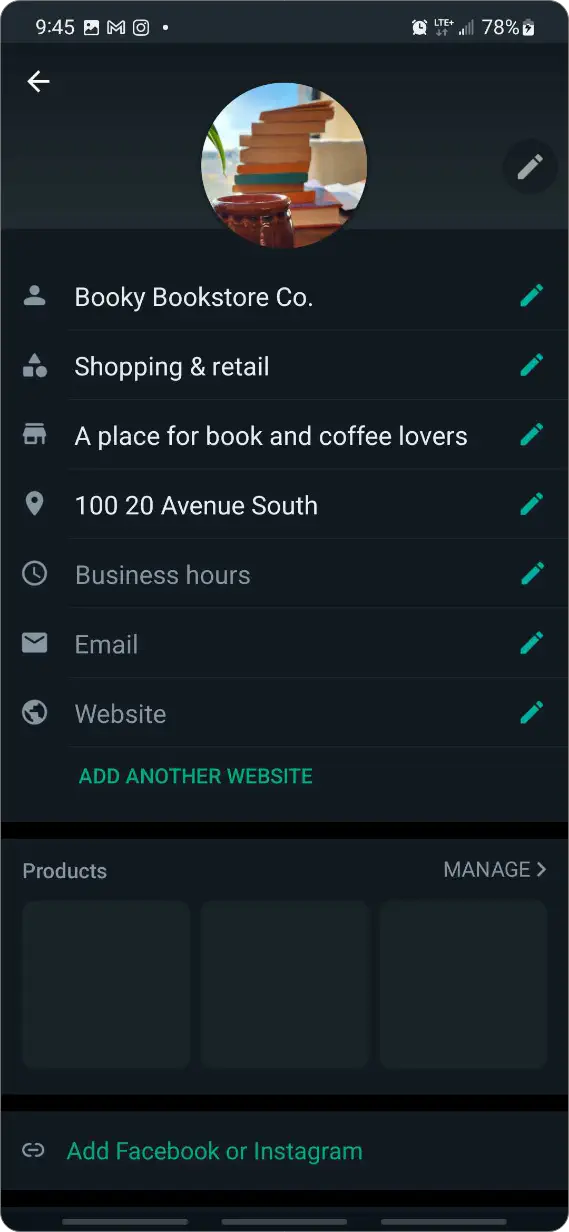 • Business description: There’s no single formula for how to write a WhatsApp Business description, but the best ones are clear, concise, and customer-focfused. In under 256 characters, highlight what your business does, who you serve, and what makes you unique.